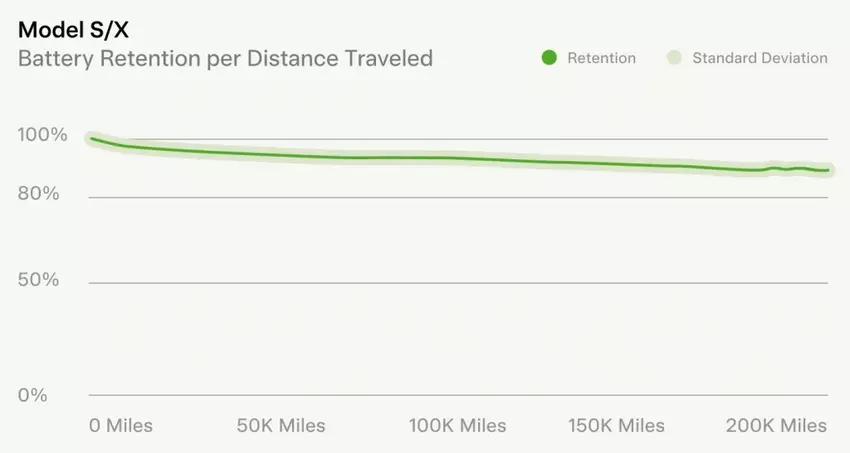Volgens officiële informatie verliezen de batterijen in de Tesla Model S en Model X na 322.000 km (200.000 mijl) 12% van hun capaciteit. Het vorige rapport gaf aan dat de batterijen met 10% degraderen bij identieke kilometerstanden.