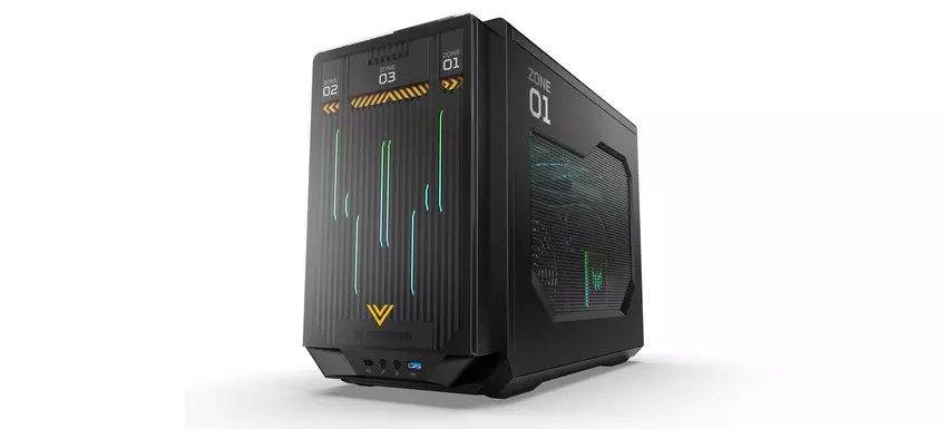 De computerkast is verdeeld in drie delen. Het grootste gedeelte is gewijd aan de processor, RAM en SSD NVMe-schijven. Het tweede gedeelte is gewijd aan de grafische kaart en het derde gedeelte heeft een vloeibaar koelsysteem.