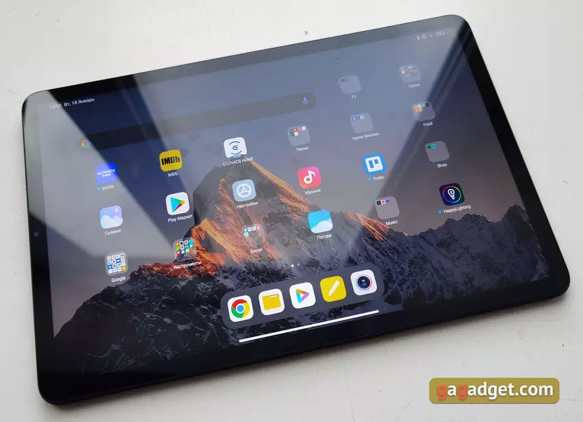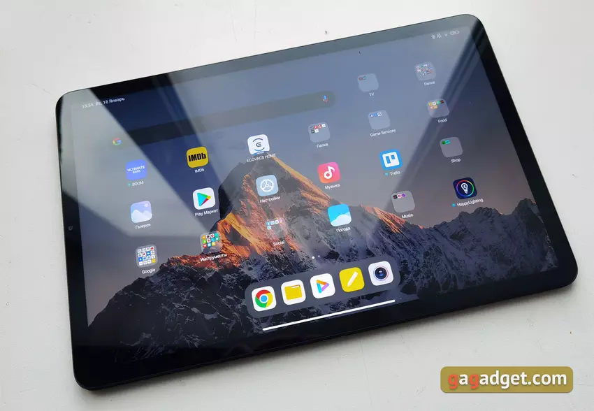 De tablet draait op Android 11 met de eigen MIUI 12.5 schil. De 13e versie op Android 12 is tot nu toe alleen in China uitgebracht. Er zijn geen significante verschillen met de smartphone schil. De interface werd "uitgerekt" tot een groot scherm en aangepast voor portret- en landschapsmodi. Er zijn varianten met locatie van alles op het bureaublad en een optie om een apart menu van applicaties op te nemen. De navigatie is gebaseerd op drukknoppen of gebaren. Van de onbekende chips is het vermeldenswaard het gordijn. Als je vanaf de rechterkant van de bovenrand van het scherm naar beneden beweegt, komt er een paneel met schakelaars tevoorschijn. Aan de linkerkant de meldingen. Het enige wat ontbreekt is de "desktop" modus, die bijvoorbeeld wel beschikbaar is in de Xiaomi Mi Mix Fold. Waarschijnlijk wordt deze toegevoegd met nieuwe firmware.