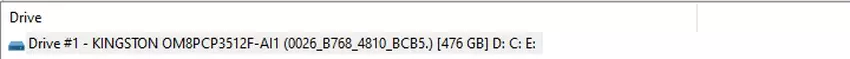 In ons monster wordt een Kingston M.2 NVMe PCIe Gen3 x4 SSD gebruikt als schijf. In onze configuratie is het mogelijk om nog een 2,5" SATA schijf te installeren. Maar er zijn laptop varianten met twee M.2 PCIe Gen3 x4 slots.