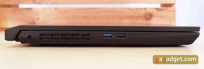 Ventilatiegaten, voedingsaansluiting en full-size USB 3.2 Gen1 en USB 2.0 poorten bevinden zich aan de linkerkant van de notebook:
