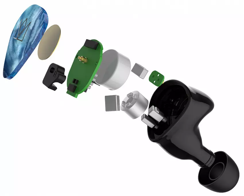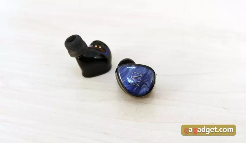 Zoals we meestal gewend zijn bij de aangepaste ontwerpen, is de vorm van de hoofdtelefoon vrij ingewikkeld, met een extra uitsteeksel aan de binnenkant van het oorstuk voor een betere pasvorm in het oor.