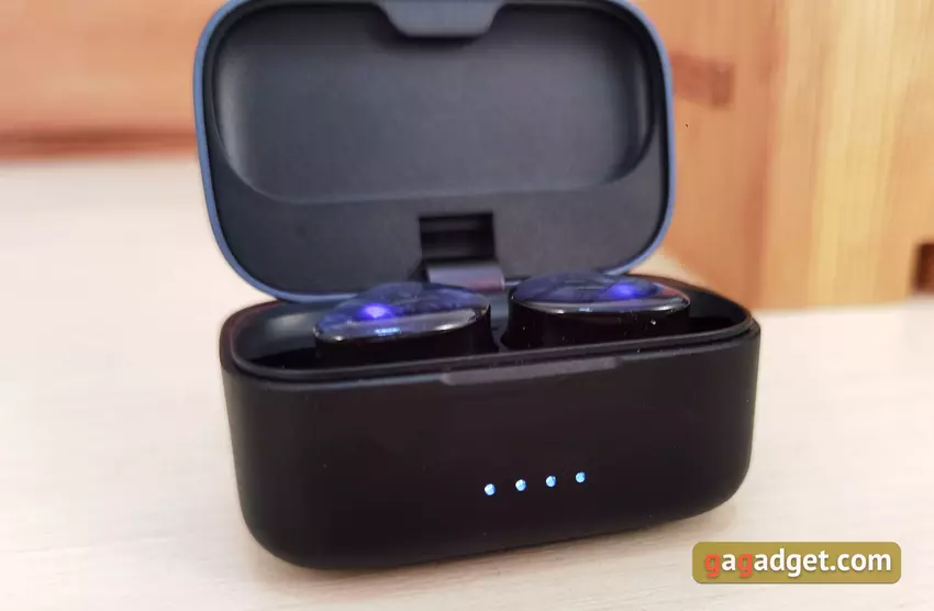 De fabrikant belooft dat de hoofdtelefoon 7,5 uur kan werken op een enkele lading op 50% volume. Snel opladen wordt ondersteund: 15 minuten in de case is genoeg voor 70 minuten gebruik. Volledig opladen van de case duurt ongeveer 1,5 uur. In reële omstandigheden werd de hoofdtelefoon voornamelijk gebruikt met aptX Adaptive codec op 70% volume: de volumemarge is indrukwekkend en het is meestal niet nodig om het volume hoger te zetten. De hoofdtelefoon verdroeg 6,5-7 uur, wat in lijn is met de geclaimde cijfers, en over het algemeen zeer indrukwekkend voor een TWS-model.