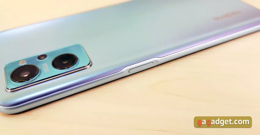 De volume- en aan/uit-knoppen zijn aan weerszijden van de smartphone geplaatst, een bekend patroon voor smartphones realme en OPPO. De powerknop is gecombineerd met een vingerafdrukscanner. Het is geplaatst op een vrij handige hoogte, je hoeft er niet naar te reiken met je duim als je de smartphone met de rechterhand gebruikt, noch met de wijsvinger van de linkerhand. De lade bevindt zich aan de linkerkant, net boven de aan/uit-knoppen.
