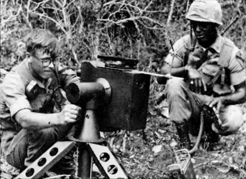 Foto: GLLD (Ground Laser Locator Designator) grondstation voor doelaanwijzing tijdens tests, 1974 (Wikipedia)