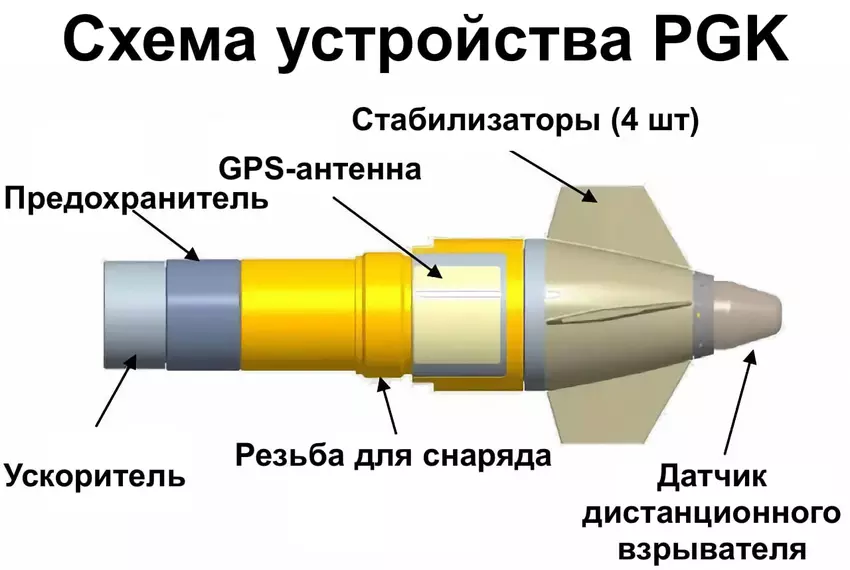- Een "Russische versie" van de PGK met GLONASS navigatiemodule voor 152mm granaten werd in 2011 ontwikkeld door het in Moskou gevestigde ontwerpbureau Kompas. Gelukkig is dit ontwerpbureau zo'n 5 jaar geleden praktisch opgeheven.