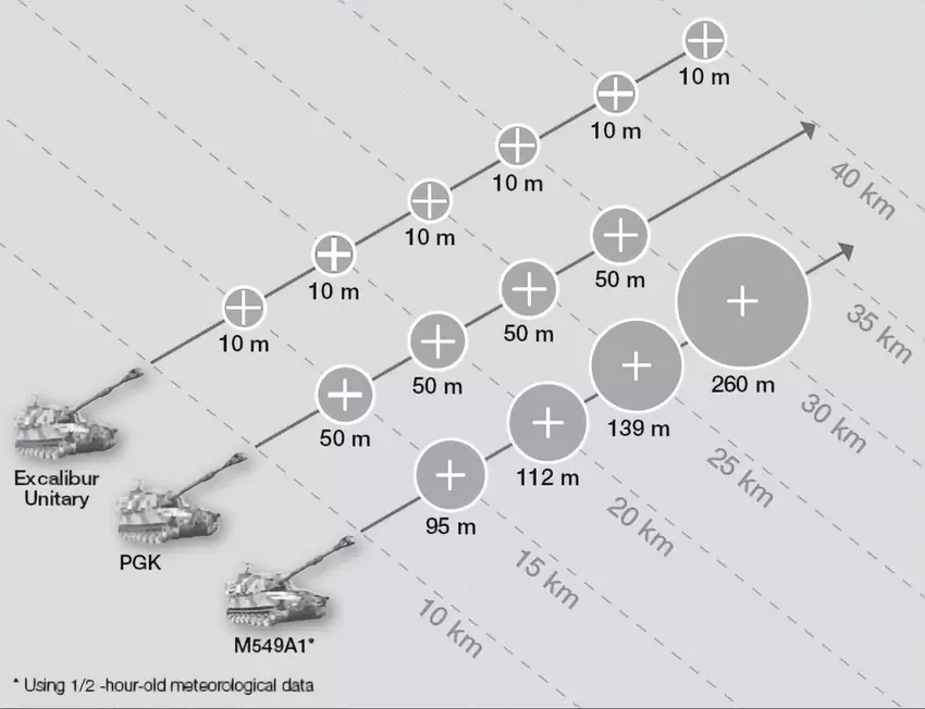 - Sinds 2014 wordt een versie van het Excalibur M982A1 projectiel met een CEP van minder dan 2 (!) meter geproduceerd.