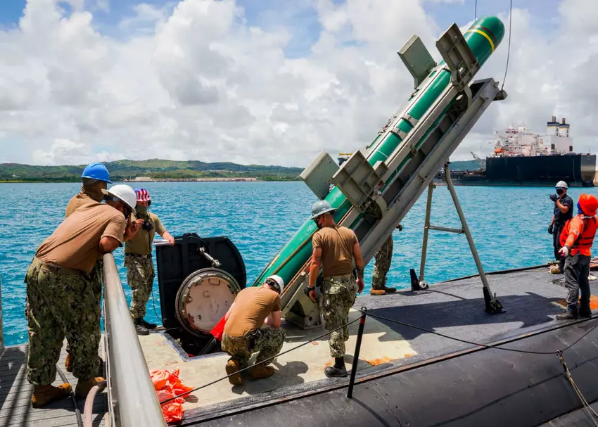 Foto: Een Harpoon oefenraket wordt geladen op het vliegdekschip USS Asheville tijdens een certificeringsoefening in 2020(Wikipedia).