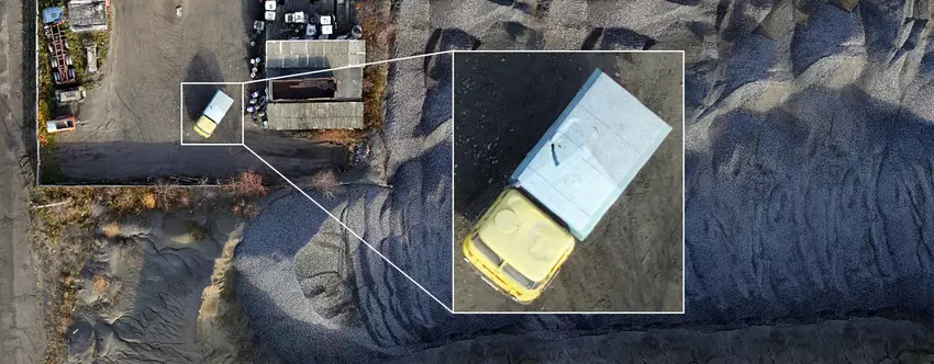 Beeldkwaliteit, atypisch voor dit formaat toestel - de 61 MP Sony Alpha A7 Mark 4 camera geeft 1 cm per pixel resolutie vanaf 100 meter, zodat je individuele bladeren en kleine steentjes in de weg kunt zien.