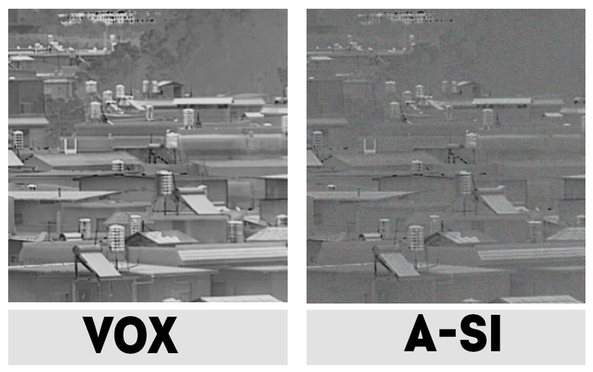 Het laatste wat we willen noemen is de sensortechnologie. Er zijn er maar twee: a-Si - goedkopere technologie, lagere gevoeligheid en lager temperatuurbereik. En VOx is een modernere en duurdere technologie, met een hogere gevoeligheid en een groter temperatuurbereik. De VOx-sensor geeft een beter beeld, vooral in slechte weersomstandigheden.