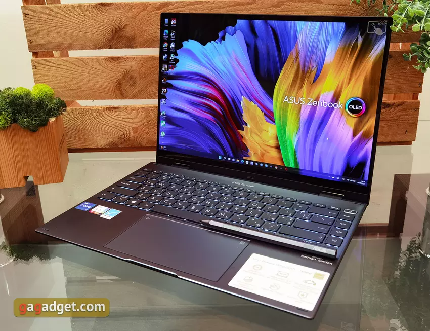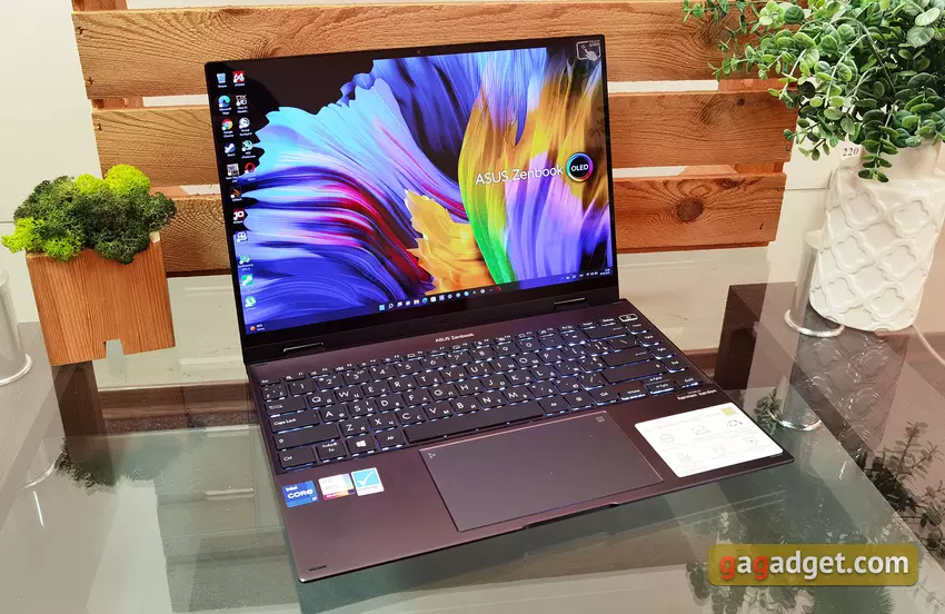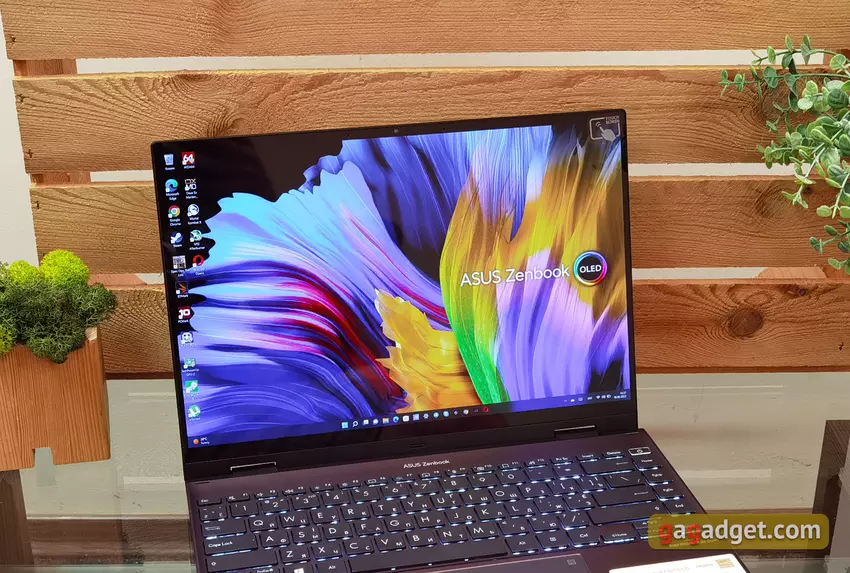 De Asus Zenbook Flip 14 OLED is een zeer prettig te gebruiken all-in-one ultra-draagbare notebook-transformer, met als een van de belangrijkste kenmerken het beeldscherm. Het 14-inch 16:10 OLED beeldscherm van de notebook heeft een opvallend verzadigd beeld, 90Hz verversingssnelheid en een hoog helderheidsniveau. Binnenin is de notebook krachtig genoeg, vanwege de vormfactor "ijzer", wat niet genoeg zal zijn, tenzij om te werken met zware graphics, of moderne games, waarvoor het niet bedoeld is. De SSD schijf op de notebook laat zeer snelle prestaties zien. Het Zenbook 14 Flip OLED toetsenbord is zeer comfortabel en verlicht, en het touchpad is vrij groot met een goede gevoeligheid. De batterijduur is wat ondermaats voor een volledige dag werken, maar 7 uur is redelijk goed. De behuizing van de laptop ziet er mooi uit en is goed gemaakt. De enige klacht over de notebook is het merkbare geluid van het koelsysteem bij maximale belasting. De ASUS Zenbook 14 Flip OLED in de configuratie die we in de review hadden, is al te koop voor 65.000 UAH. Over het algemeen heeft de laptop een paar concurrenten met vergelijkbare hardwareconfiguraties: de Lenovo Flex 5 en de HP Pavillion x360. Ze zijn iets goedkoper, maar kunnen niet concurreren met de reviewer in termen van beeldkwaliteit. Ze hebben standaard 16:9 IPS-schermen met een resolutie van 1920x1080 en standaard 60Hz.