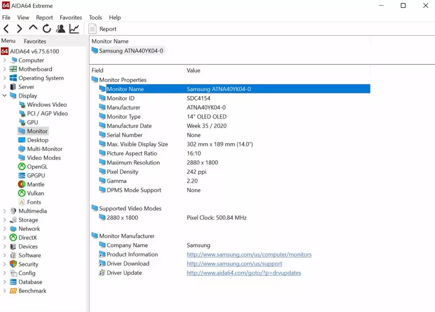 De notebook is voorzien van Samsung's OLED matrix, model ATNA40YK04-0. Er wordt beweerd dat het een maximale helderheid heeft van 400 cd/m2: