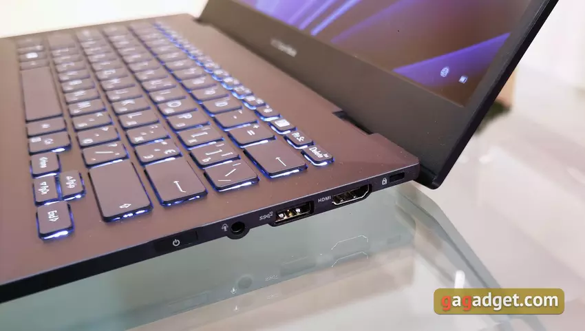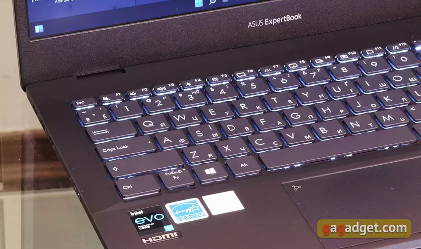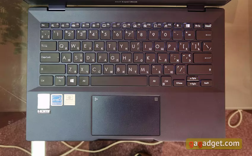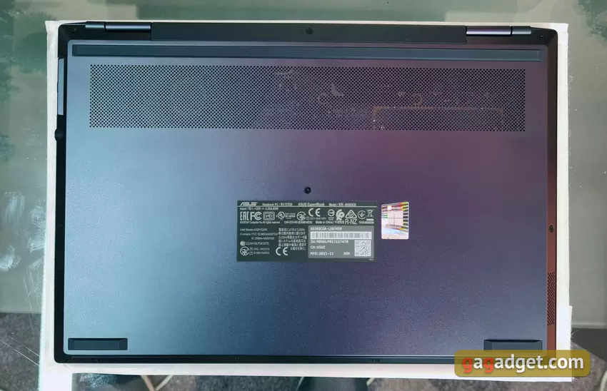 De ASUS ExpertBook B5 is voorzien van een 66Wh viercellige accu, ASUS belooft tot 14 uur accuduur. Een volledige lading via de meegeleverde 65W voeding duurt ongeveer 2 uur en 30 minuten. Zoals verwacht bleek de laptop zeer veerkrachtig. Hij kan meer dan een werkdag draaien zonder op te laden, dus je kunt de voeding meenemen naar kantoor zonder hem überhaupt mee te nemen. In wat meer detail, het gebruiksscenario is ongeveer als volgt: helderheid net onder 50%, browser met een hoop tabbladen, messengers, af en toe gebruik van Photoshop voor het snijden van foto's en het streamen van audio in een koptelefoon. In deze modus ging de laptop ongeveer 11 uur mee, wat indrukwekkend is.