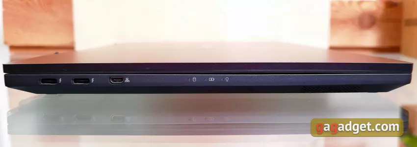 Aan de linkerkant zitten twee Type-C Thunderbolt 4 met Power Delivery en DisplayPort, LED's en Micro HDMI naar LAN met vast MAC-adres voor eenvoudig beheer op bedrijfsnetwerken: