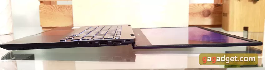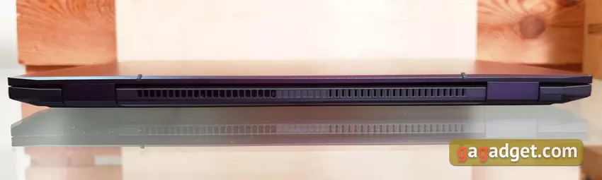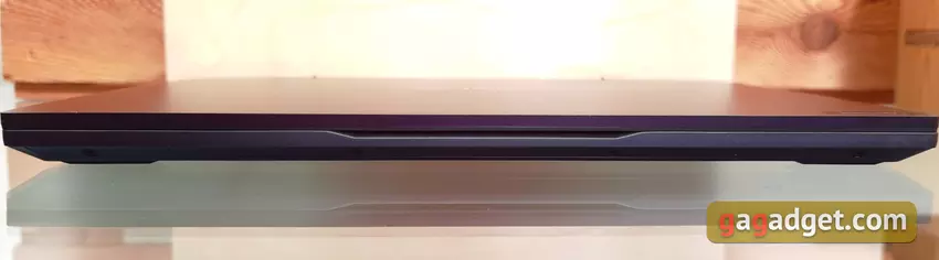 Aan de voorkant is de traditionele ultrabook-uitsparing voor het comfortabeler optillen van het deksel: