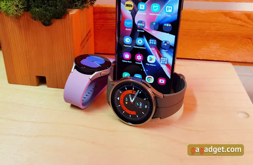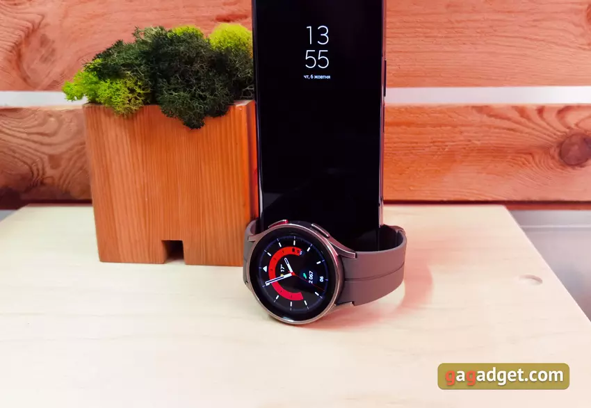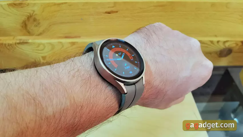 Een groot voordeel van de nieuwe Samsung Galaxy Watch5 Pro en Watch5 is de grotere accu. Vergeet niet dat de Pro versie 590 mAh is, de Watch5 40mm heeft 284 mAh (de vorige waren 247 mAh). De toename in batterijduur is inderdaad zeer aanzienlijk, zeker voor de Samsung Galaxy Watch5 Pro. Het horloge werd "to the max" gebruikt: automatisch opnemen van wandelingen, workouts, constante monitoring van het zuurstofgehalte in het bloed tijdens de slaap, snurktracking, constante meting van hartslag en stress, Always on Display, veel notificaties, spelersbeheer, een of twee keer een half uur joggen. In deze modus gaat het horloge 2,5-3 dagen mee. De vorige generatie ging in een vergelijkbare modus 1-1,5 dag mee, dus het verschil is erg groot. De gewone Samsung Galaxy Watch5 heeft een iets kleinere winst, maar die is er ook: 1,5-2 dagen. Ja, natuurlijk zijn er fitnessarmbanden die één keer per week kunnen worden opgeladen. Maar het is absoluut onjuist om de functionaliteit te vergelijken.