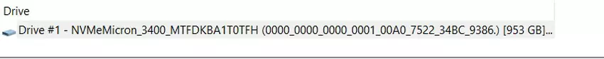 De schijf is een M.2 PCIe Gen4 x4 NVMe SSD, een Micron 3400 1TB model. Het belooft tot 6600MB/s leessnelheid en tot 5000MB/s schrijfsnelheid. Notebook heeft twee M.2 drive slots en ze kunnen worden gecombineerd tot een RAID0 array.