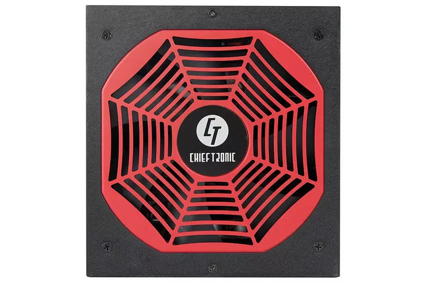 De Chieftronic PowerPlay 850W is een van de meest ongewoon uitziende voedingen die er zijn. Het ventilatierooster heeft de vorm van een spinnenweb. Versies tot 750W hebben een gouden energie-efficiëntie certificaat, terwijl de 850W en hoger een platina rating heeft. De efficiëntie is 94%. Alleen 80 PLUS Titanium met een efficiëntie van 96% is steviger, maar dergelijke modellen zijn op de vingers te tellen.