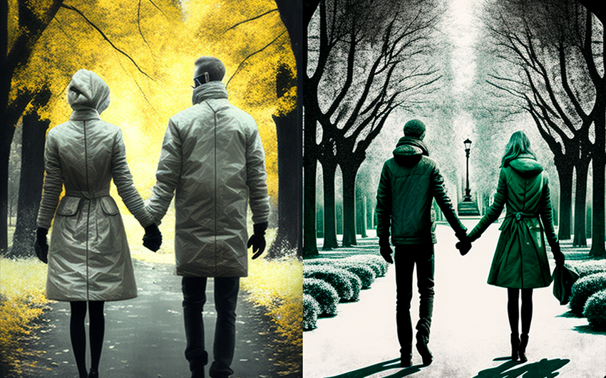 Maar als je niet alleen handen wilt, maar ze in het kader wilt betrekken? Schrijf dan bijvoorbeeld "een koppel dat elkaars handen vasthoudt terwijl ze in een park lopen en handschoenen dragen. Als je gaat inzoomen, kun je kleine foutjes vinden, maar met het blote oog is het moeilijk te zien wat er mis is.