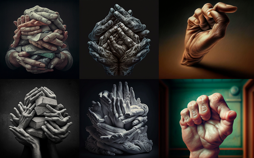 Het wordt nog ingewikkelder als je meerdere handen in hetzelfde beeld creëert, zoals twee mensen die elkaars hand vasthouden, of een groep vrienden in een omhelzing. En elke hand moet nauwkeurig worden getekend, anders is het hele beeld niet wat het moet zijn. Meestal zijn de handen van de AI zo vreemd omdat ze "overladen" zijn in de foto.