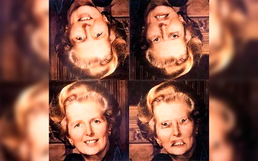 Waarom valt dit niet op? Deze illusie staat bekend als het 'Thatcher-effect', genoemd naar de voormalige Britse premier Margaret Thatcher, wiens afbeelding voor het eerst voor deze truc werd gebruikt.