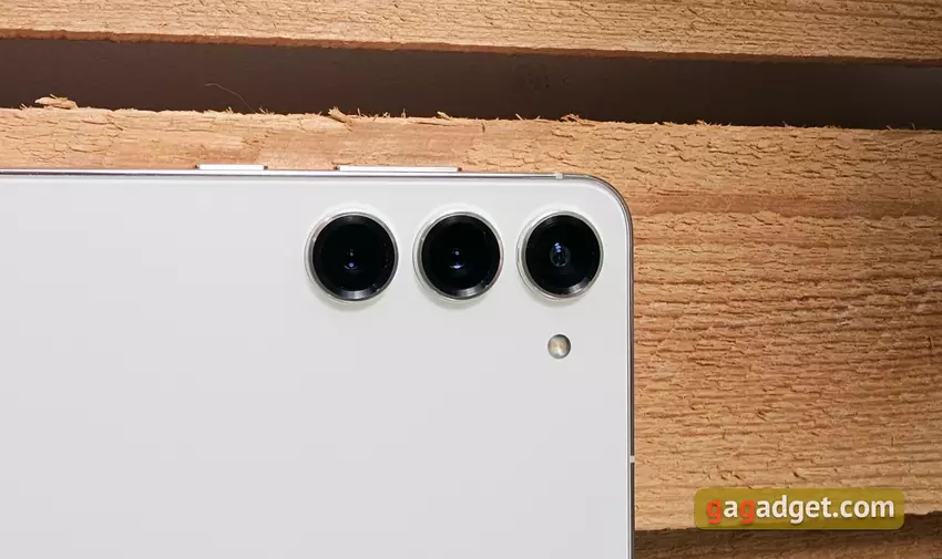 De belangrijkste ontwerpwijzigingen zitten aan de achterkant. In plaats van een gemeenschappelijke metalen camera-unit hebben we nu drie afzonderlijke verticaal geplaatste lenzen van dezelfde vorm en grootte. De situatie met de kleur van het frame is vergelijkbaar: zilver of dezelfde kleur als de smartphone. Over het geheel genomen ziet het er goed uit. Maar net als bij de Ultra steken de camera's behoorlijk uit. De verf kan eraf schuren. Het glas van de achtercover is mat en voelt prettig aan. Op lichte modellen zijn er helemaal geen afdrukken, op donkere modellen wel, maar niet kritisch en bederft het totaalbeeld niet. De kleuropties zijn zwart, lavendel, crème en groen. Wij hadden crème en groen. Het hangt allemaal af van persoonlijke voorkeur. Maar het is jammer dat ze bij Samsung Galaxy Fold4 besloten hebben om het groen te vervangen door grijsgroen. Subjectief gezien was dat veel beter.
