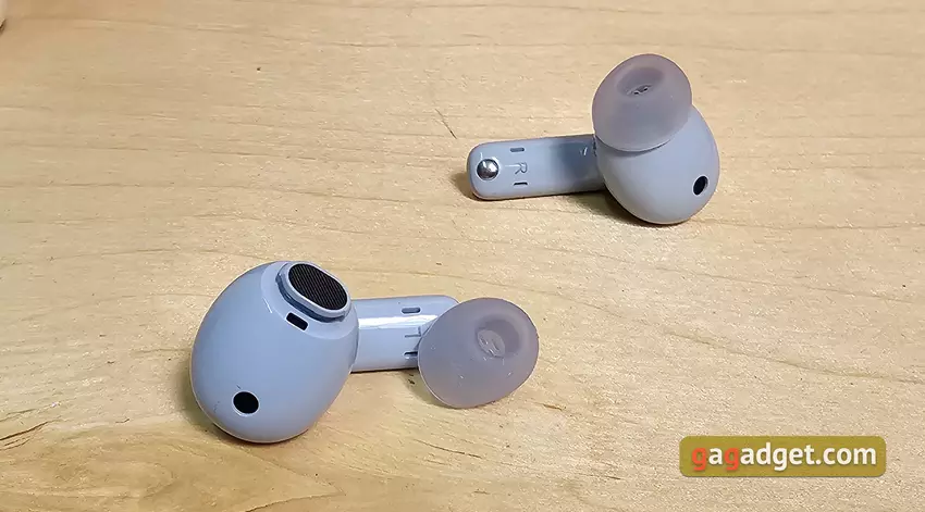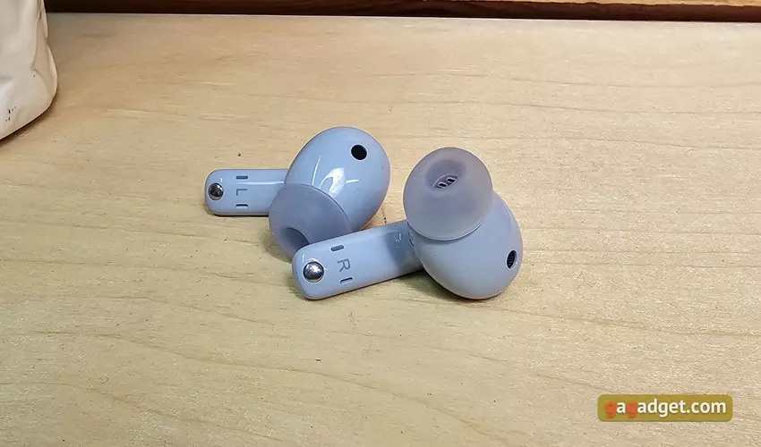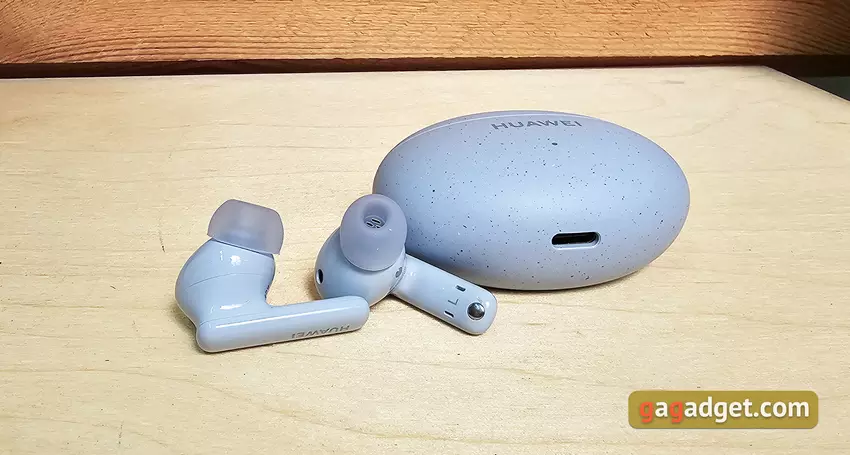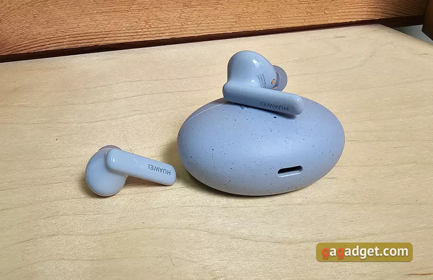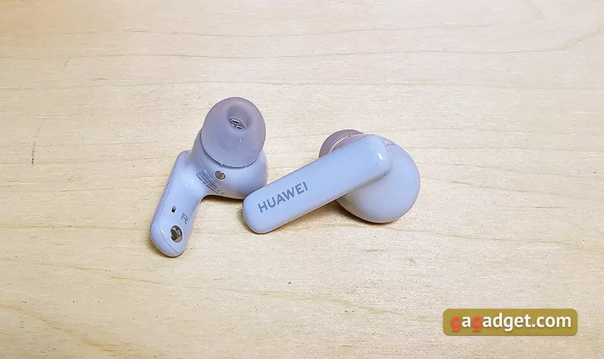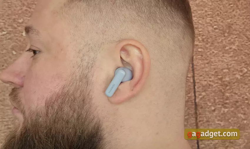 Huawei FreeBuds 5i hebben een zeer comfortabele en doordachte vorm. Dit, samen met het minimale gewicht, zorgt ervoor dat je ze urenlang kunt gebruiken zonder enig ongemak. Na een tijdje vergeet je de aanwezigheid van een koptelefoon in je oren. Met de juiste keuze van oorstukken krijg je een vrij goede passieve geluidsisolatie. Maar het is de moeite waard te weten dat de Huawei FreeBuds 5i een zeer ondiepe pasvorm hebben. En ik heb een tijdje geprobeerd ze dieper in mijn oor te schuiven. Dus het kan een beetje ongemakkelijk zijn voor degenen die van een diepe pasvorm houden.