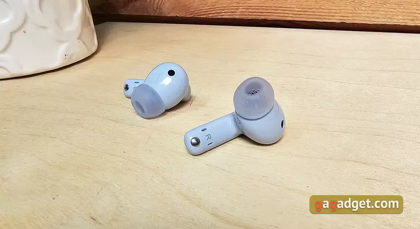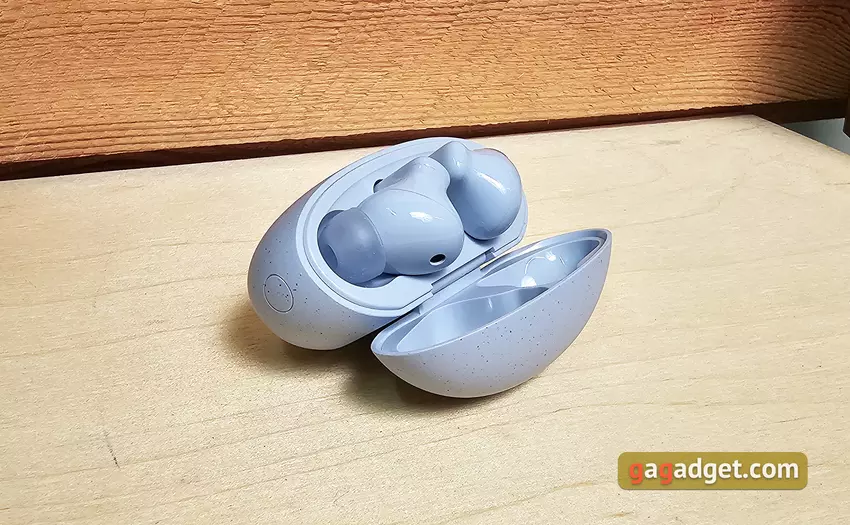 Het deksel heeft een zeer duidelijke vergrendeling en automatische terugtrekking in beide posities, het wiebelt helemaal niet. De hoofdtelefoons in het hoesje worden op hun plaats gehouden door sterke magneten en komen er niet uit, zelfs niet als het hoesje wordt geschud. Het enige ongemakkelijke is het glanzende oppervlak van de hoofdtelefoon. Het is moeilijk om ze eruit te krijgen. Na verschillende pogingen bleek dat de beste manier om ze eruit te krijgen is door aan de siliconen uiteinden te trekken.