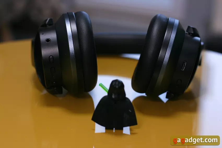 Maar terug naar de aansluiting. Om met bedrade bronnen te werken, sluit u gewoon de meegeleverde of soortgelijke audiokabel aan op de hoofdtelefoon en de audiobron. Voor een Bluetooth-verbinding houdt u de aan/uit-knop ingedrukt totdat de LED blauw-rood knippert. Selecteer vervolgens de hoofdtelefoon in de lijst met beschikbare apparaten op de smartphone of een ander apparaat waarmee u hem wilt verbinden. Er zijn geen apps die met deze hoofdtelefoons werken, dus u hoeft niets te configureren.