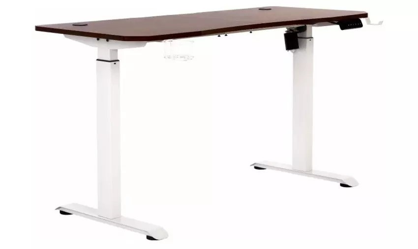 Het tafelblad is van laminaat en is verkrijgbaar in drie kleuren: wit, zwart of bruin. Er is geen sfeerverlichting, maar er is een haak voor koptelefoons en een blad voor kopjes of glazen zodat ze niet per ongeluk omvallen. Een verborgen kabelbeheersysteem is ook aanwezig, uiteraard onder de tafel. De lengte van de tafel is vergroot tot 140 cm, de diepte is standaard 60 cm en de hoogte is verstelbaar van 75 tot 115 cm. Ook in het assortiment van het Oekraïense merk Hator zit een meer betaalbare tafel Vast Essential zonder motor en dus hoogteverstelling.