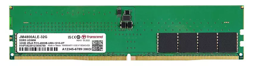 Er is ook een controlechip verschenen die de kanalen synchroniseert en ECC-fouten corrigeert. Voorheen kon alleen servergeheugen bogen op de ECC-functie. Het textolite is van de klassieke groene kleur gebleven, er zijn geen radiatoren, hoewel die niet nodig zijn tenzij je van plan bent te experimenteren met extreem overklokken. Goedkoop DDR5-geheugen wordt meestal gekocht in een paar met een moederbord zonder overklokondersteuning. Chips worden gebruikt door SpecTek, een dochtermerk van MIcron. Naast desktop Long-DIMMs, bevat Transcend's JetRam serie ook laptop SO-DIMM DDR5s.