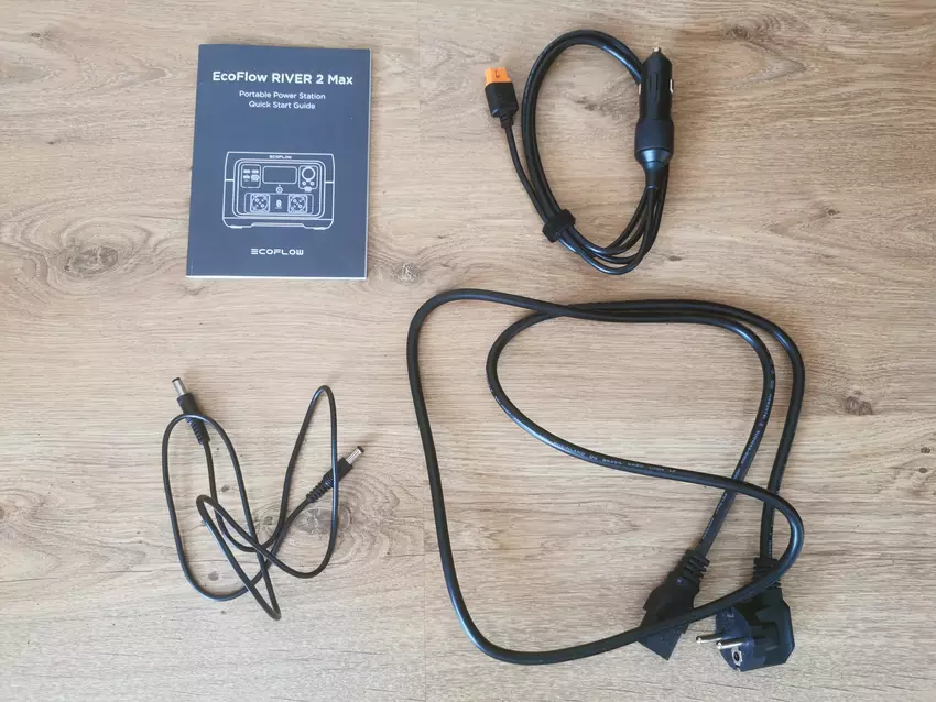 De EcoFlow River 2 Max wordt geleverd in een ruime doos. Naast het laadstation zelf bevat het pakket een snelstartgids en drie kabels: een DC5521, een AC-lader en een autolader. De handleiding is beschikbaar in verschillende talen, maar niet in het Oekraïens. Russisch is wel beschikbaar.