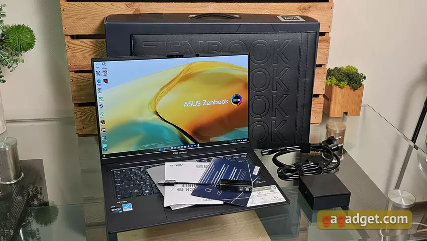 Het meest interessante deel zit binnenin de laptop. Het heeft Intel's nieuwe 13e generatie Raptor Lake processor. In ons geval is het een Intel Core i7-13700H. Meestal worden H-serie processoren gebruikt in de meer "massieve" draagbare werkstations en gaming laptops, terwijl de zoals de ASUS Zenbook 14X OLED (UX3404VA) ultradraagbare modellen de lagere prestaties, energie-efficiënte U of P-serie processoren krijgen. De Intel Core i7-13700H is vervaardigd met behulp van Intel 7 processortechnologie, heeft een TDP van 45W en een 24MB cache. De configuratie van de kernen is vergelijkbaar met de overeenkomstige processoren van vorig jaar. Namelijk: 6 prestatiekernen op 2,4-5GHz en 8 energiezuinige kernen op 1,8-3,7GHz. Er is ondersteuning voor multi-threaded computing: tot 20 threads. Er is 16GB LPDDR5-4800 RAM. Het is ongesoldeerd op het bord, dus het kan niet worden uitgebreid. In deze configuratie is er geen discrete grafische kaart, alleen Intel Iris Xe embedded .Deze heeft 96 actuatorblokken en kan een maximale frequentie van 1500MHz bereiken. Er is een krachtigere laptopconfiguratie met een Intel Core i9, 4GB NVIDIA GeForce RTX 3050 laptop graphics en 32GB RAM. Draadloze interfaces zijn Wi-Fi 6E (802.11ax) en Bluetooth 5.2.