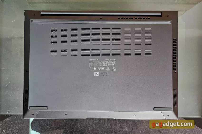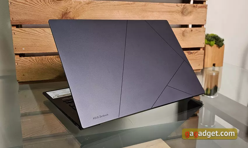 De notebook meet 321.8x225.6x16.9mm en weegt 1.56kg. Ja, er zijn lichtere en compactere modellen, maar het is de moeite waard om te onthouden dat binnenin een 13e generatie Intel Core H-serie processor zit en een discrete grafische kaart in sommige configuraties. De laptop heeft een mooie uitstraling en materialen, maar de bovenklep is bevlekt. Net als de overgrote meerderheid van de huidige modellen in het assortiment, voldoet de ASUS Zenbook 14X OLED aan de Amerikaanse militaire standaard MIL-STD-810H eisen en kan theoretisch tegen zwaardere omgevingen.