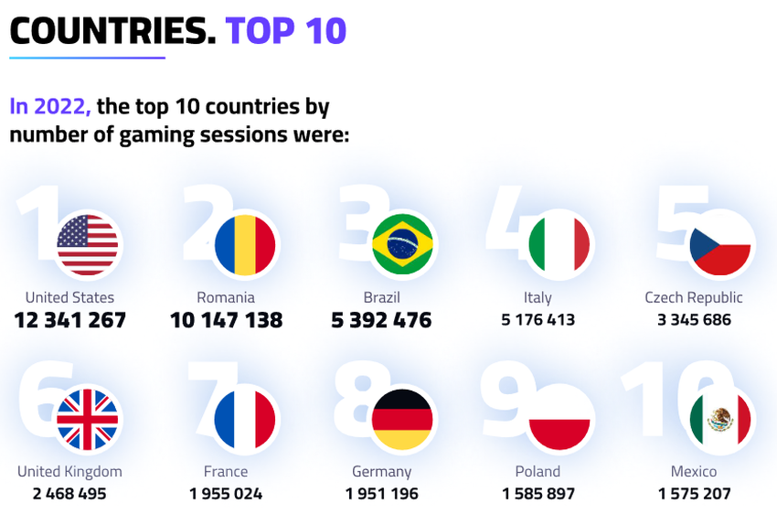 Artem Skoryy: Nu zijn de top vijf landen door het aantal spelsessies de VS, Roemenië, Brazilië, Italië en Tsjechië.