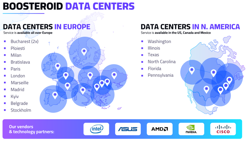 Vladyslav Kosmin: In Oekraïne zijn wij de enige dienst die de infrastructuur in het land zelf heeft geplaatst. Waarom is dit belangrijk: het zorgt voor een snelle en stabiele verbinding in heel Oekraïne, want als je onze concurrenten neemt, maakt de gebruiker bijvoorbeeld verbinding in Frankfurt, terwijl onze servers zich direct in Kiev bevinden. Gedurende de tijd dat het signaal van gebruiker naar server gaat, wordt het verwerkt, gedecodeerd, opnieuw gecodeerd en wanneer het signaal na al deze manipulaties een gebruiker bereikt, is dat een lange periode. En in Boosteroid is de vertraging voor Oekraïense gebruikers tot 15 milliseconden.