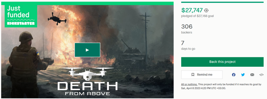 Hendrik Lesser: Wanneer de Kickstarter-campagne eindigt en Death From Above op Steam early access wordt uitgebracht, wordt 30% van de nettowinst uit de verkoop van het spel gedoneerd aan twee Oekraïense goede doelen: Return to the Living en de Drone Army. Zodra de ontwikkeling loont, zal het bedrag aan donaties toenemen tot 70% van de nettowinst en de resterende 30% gaat naar de ontwikkeling van nieuwe content voor het spel.