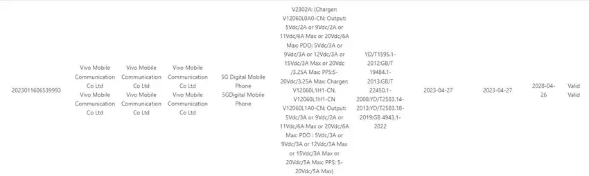 Het toestel is gespot in de database van het Chinese certificeringsbureau 3C. De gadget passeert met modelnummer V2302A. Volgens de documenten krijgt de noviteit snellaadondersteuning met 120W aan vermogen. Wat de batterij betreft, deze zal een capaciteit hebben van 5000 mAh.