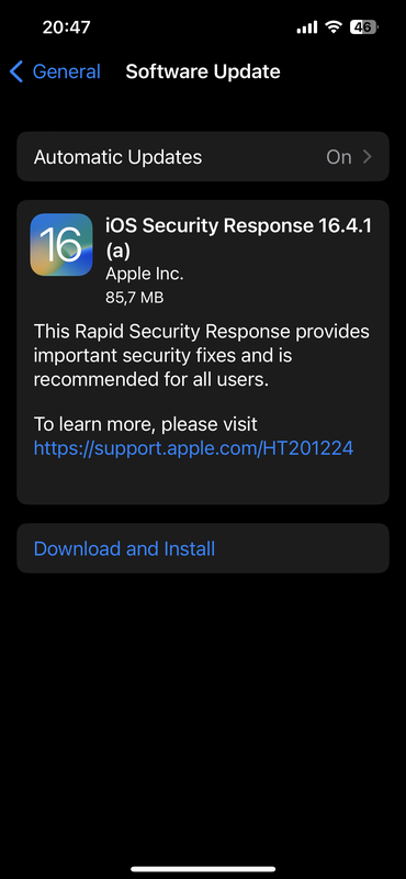 Apple heeft onverwacht een Rapid Security Response (RSR)-update aangekondigd voor iPhone- en iPad-gebruikers met iOS 16.4.1.