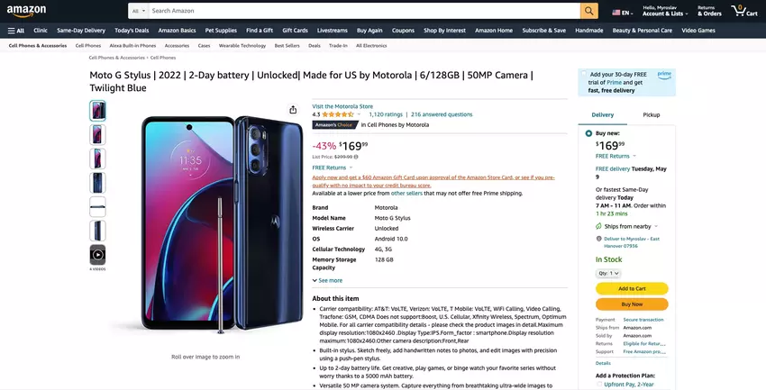 We hebben het over het model Moto G Stylus 2022. Deze is nu op Amazon te koop voor $179.99- $179.99. De smartphone heeft een groot display met een diagonaal van 6,8 inch, een IPS-matrix en een verversingssnelheid van 90 Hz. De Moto G Stylus 2022 wordt aangedreven door een MediaTek Helio G88-processor gekoppeld aan 6GB RAM en 128GB opslagruimte.