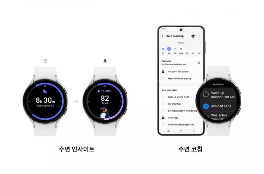 De schil heeft de naam One UI 5 Watch gekregen. Volgens Samsung hebben de ontwikkelaars zich gericht op het verbeteren van drie aspecten van het systeem: slaap, sportfuncties en beveiliging. Zo heeft Samsung zijn eigen slaap tracking app bijgewerkt en Sleep Coaching toegevoegd om gezonde gewoontes op te bouwen.