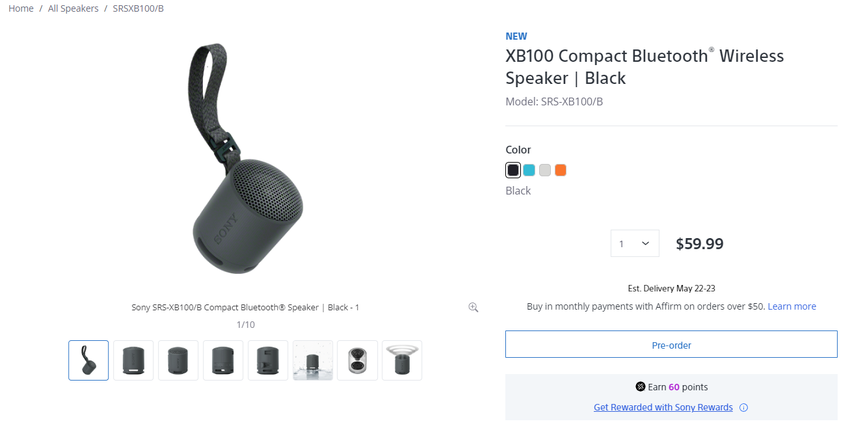 De Sony SRS XB100 is geprijsd voor 60 dollar. Hij is al beschikbaar voor pre-order op de officiële website van het Japanse bedrijf. De leveringen beginnen op 22-23 mei 2023.