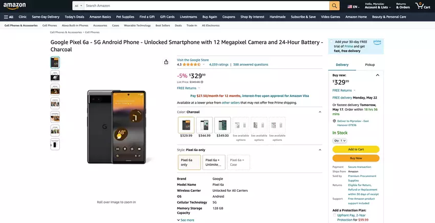 Pixel 6a op Amazon: OLED-scherm, Tensor-chip en vlaggenschipcamera voor 329 dollar (20 dollar korting)