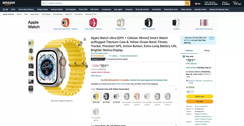 De topklasse Apple Watch Ultra smartwatch is voor het eerst met korting te koop bij Amazon.
