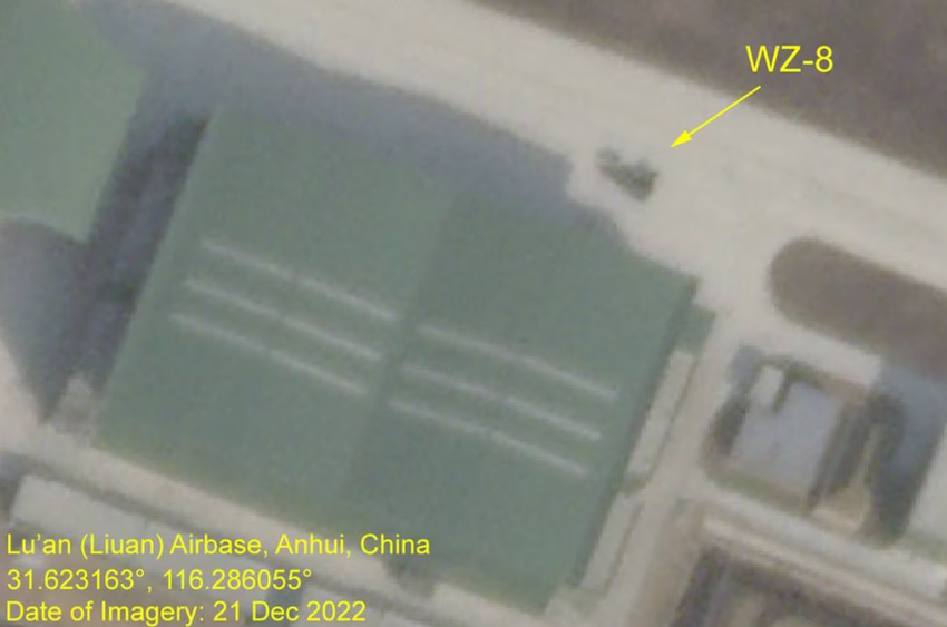 Verslaggevers van Defense News hebben een beeld gekregen van China's geheime supersonische WZ-8 drone. De drone staat geparkeerd buiten een van de nieuwe hangars op de Lu'an luchtmachtbasis in de provincie Anhui.
