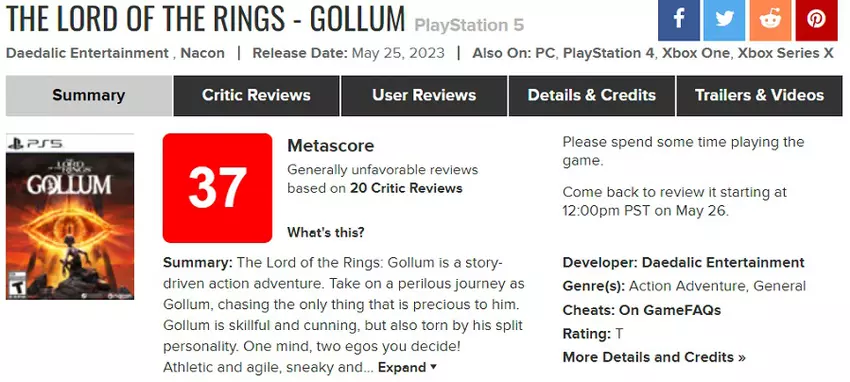 Het is een flop: 37 punten op aggregators maakt The Lord of the Rings: Gollum een van de slechtste games van de afgelopen jaren