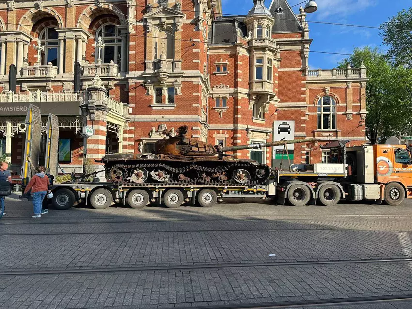 Een Russische tank is op weg naar een NAVO-land. Inwoners en bezoekers van de Nederlandse hoofdstad kunnen de T-72B met eigen ogen zien. Het 44 ton zware gevechtsvoertuig staat in het centrum van Amsterdam, maar er is een nuance.