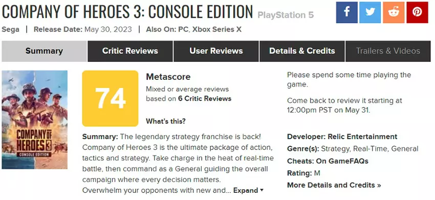 Critici zijn niet blij met de consoleversie van Company of Heroes 3 en klagen over onhandige besturing op de gamepad