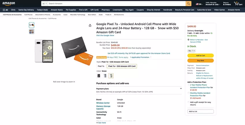 Google is weer begonnen met de verkoop van de Pixel 7a smartphone op Amazon met een cadeaubon van $50.