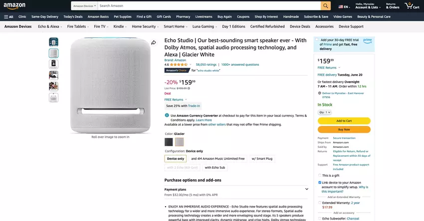 Amazon is begonnen met de verkoop van zijn vlaggenschip, de Echo Studio, tegen een gereduceerde prijs.